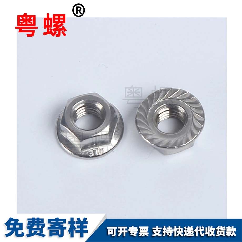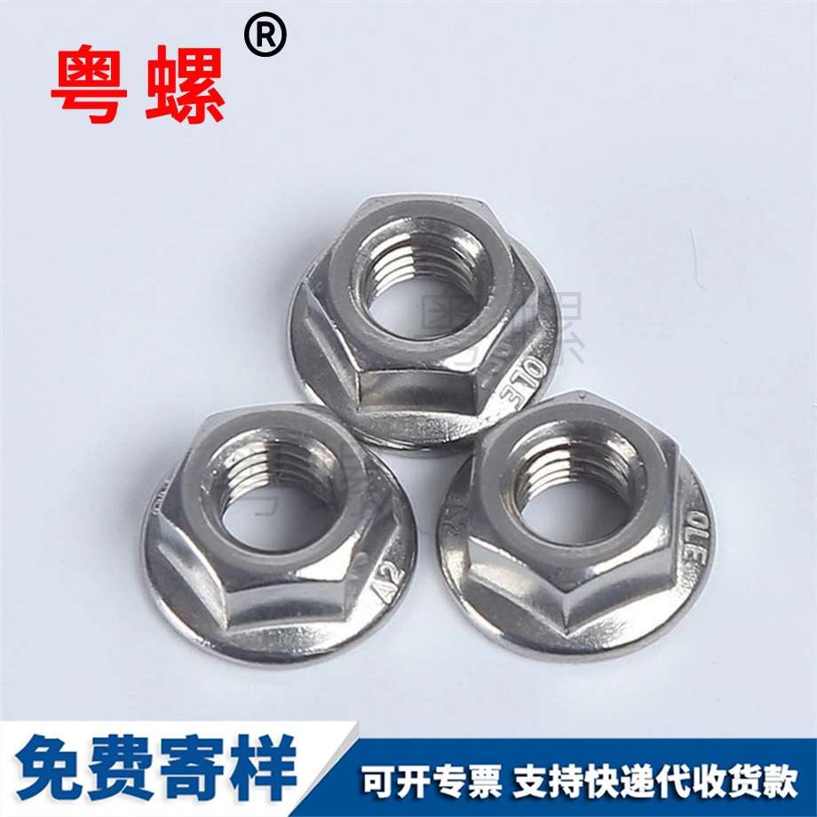 六角法蘭面螺母主要包括螺母體,在螺母體的一端固定有法蘭面,在螺母體的另一端固定有蓋帽。具有較好的密封性和防腐性。 六角法蘭面螺母主要包括螺母體,在螺母體的一端固定有法蘭面,在螺母體的另一端固定有蓋帽;由于在螺母體上設置了蓋帽,因而在使用六角法蘭面螺母時具有較好的密封性,可以有效地阻止雨水、潮氣、粉塵等有害物質浸入到螺母體中,防止螺母體發生銹蝕現象,從而可以大大延長六角法蘭面螺母使用壽命。